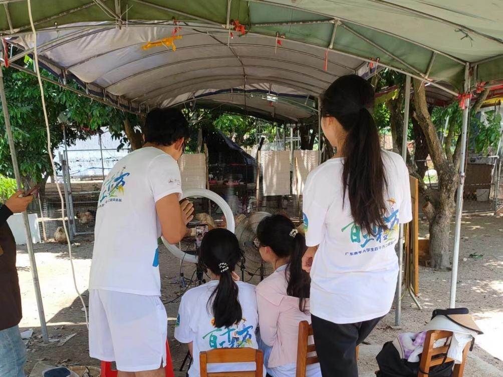 湛江科技学院“同心振乡”三下乡社会实践调研团队来到那蓬村村委会,随后对村干部王宏图进行采访。调研队成员了解到,那蓬村计划搭建直播平台,利用互联网+农业的新模式,将优质的养殖产品推向更广阔的市场;另一方面,深挖文化底蕴,依托关山月故居这一独特文化资源,促进文化旅游产业的深度融合,为那蓬村的经济增长注入新的活力。实践团成员们做好笔记,为后续宣传工作打下了基础。