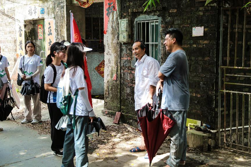 图为实践团成员采访村民(湛江科技学院“古村新生”实践团供图)