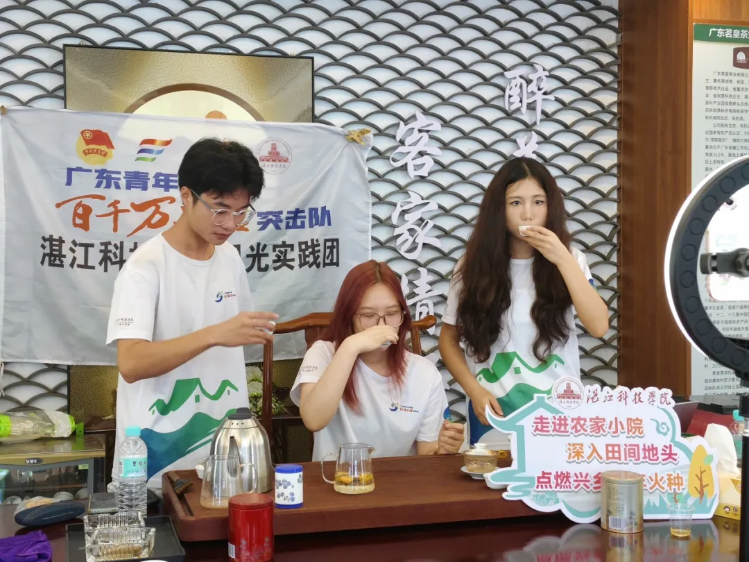 图为实践团成员直播饮茶(湛江科技学院“粤光”实践团供图)