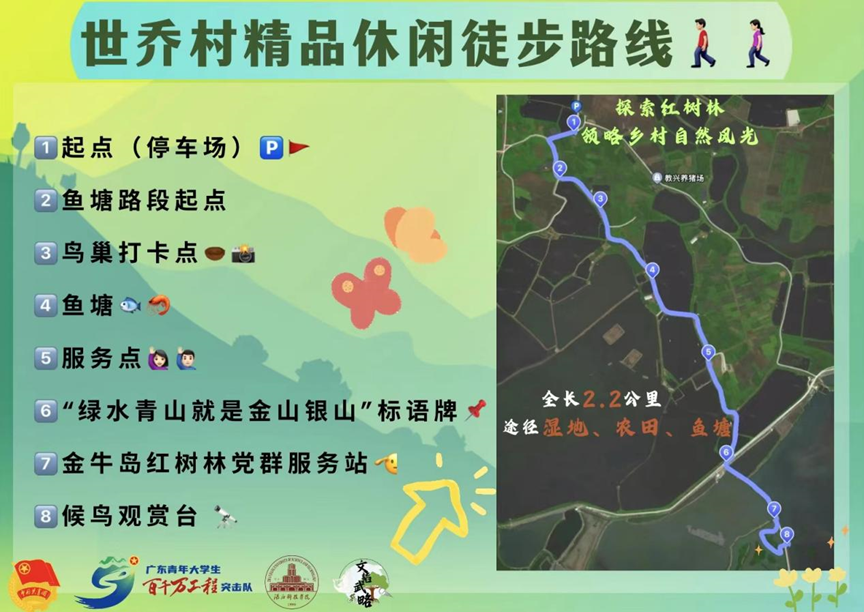 如今,金牛岛红树林的生态旅游业为村庄注入新的活力。在与当地工作人员交流过程中,成员们提出依托金牛岛红树林的生态保护与可持续发展,开辟绿色振兴乡村新路径。实践团成员们设计红树林明信片、策划徒步、跑步等户外项目,巧妙融合“体育”与“文旅”元素,不仅提升红树林的知名度,还拉动体育旅游经济,更为世乔村注入新的绿色活力与发展动力。
