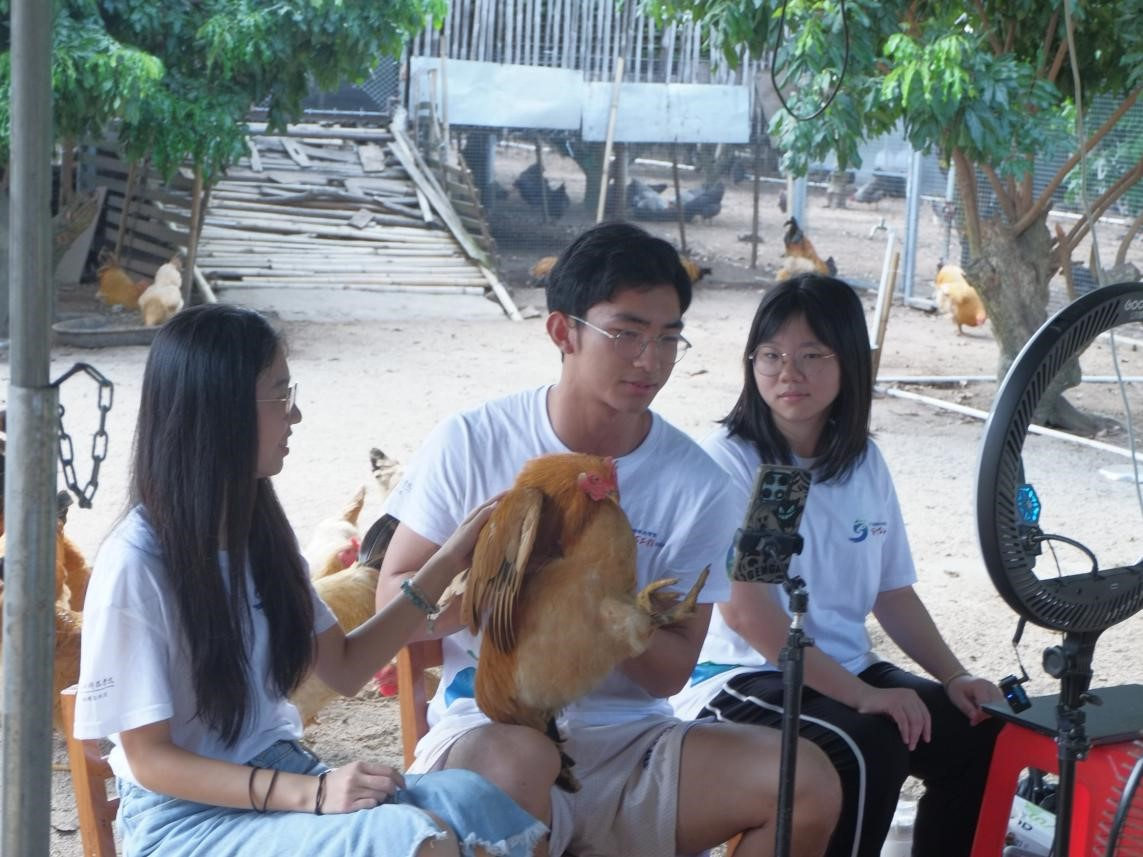 团队成员们深入鸡场一线,与黄府农场紧密合作,通过直播平台,将黄府鸡的生态养殖环境、饲养过程及独特优势生动地展现给全国观众。昭曜实践团队员在直播间中,一边与观众互动,一边详细解答大家关心的问题,专业的知识和亲切的态度赢得了众多观众的点赞和好评。此次行动,不仅提高了安铺黄府鸡的线上知名度,在一定程度上促进了优质农产品的销售。更以“物联网+农业”的创新模式,为农村经济多元化发展注入了新鲜血液。
